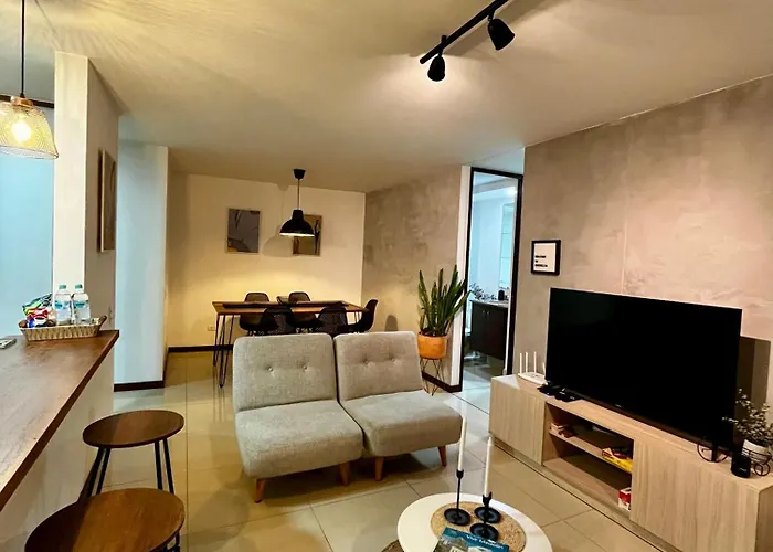 Apartamento Completo Poblado - Ubicacion Central Con Parqueadero provides guests with the convenience of self-catering amenities, like a fully-equipped kitchen and a dining area for their enjoyment. The apartment is in proximity to Barrio Colombia bus station.